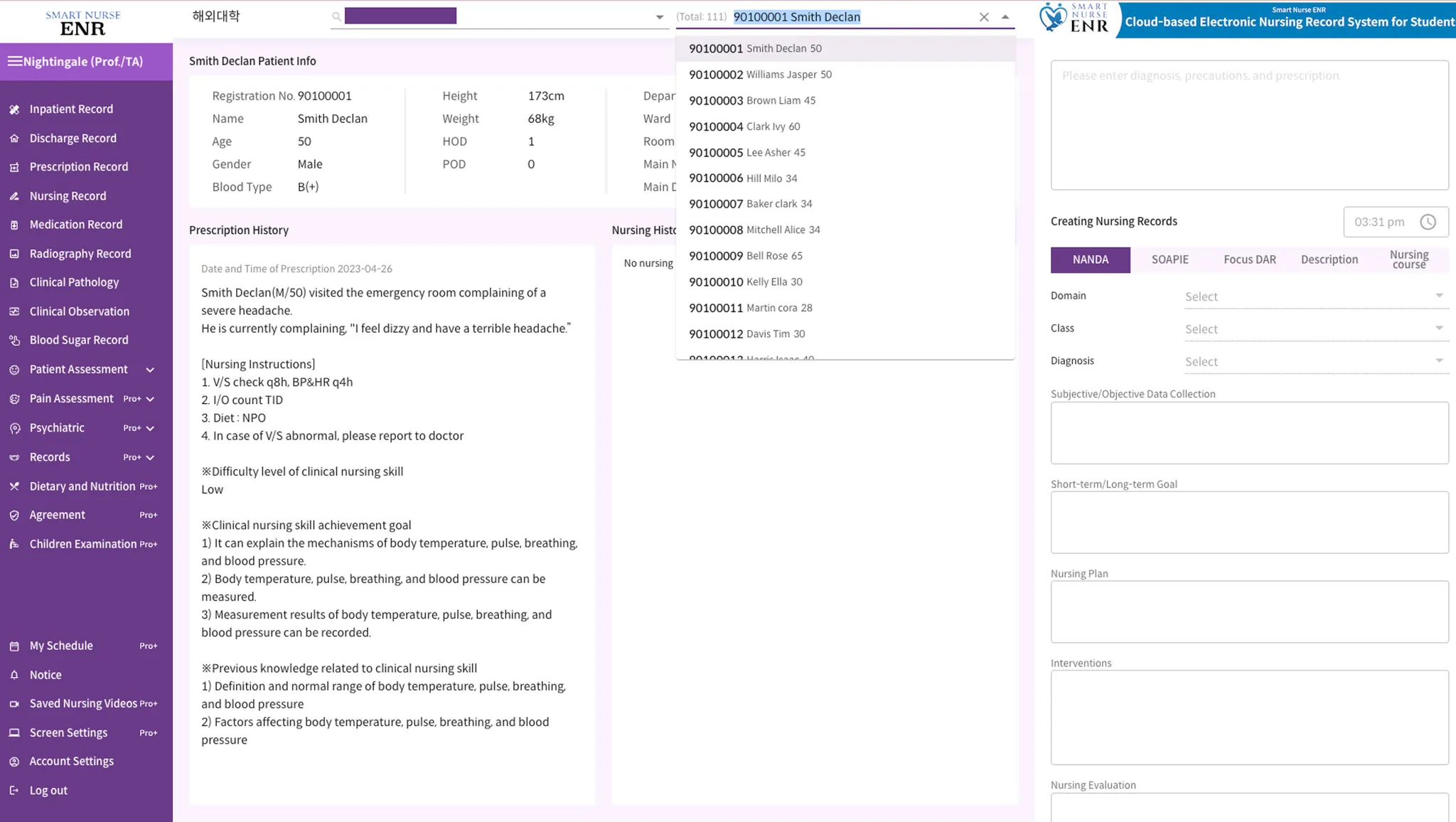 “After selecting ‘Search for students,’ select the case you want to check in the ‘Search for patients’ on the right. The attached picture below is a random example.